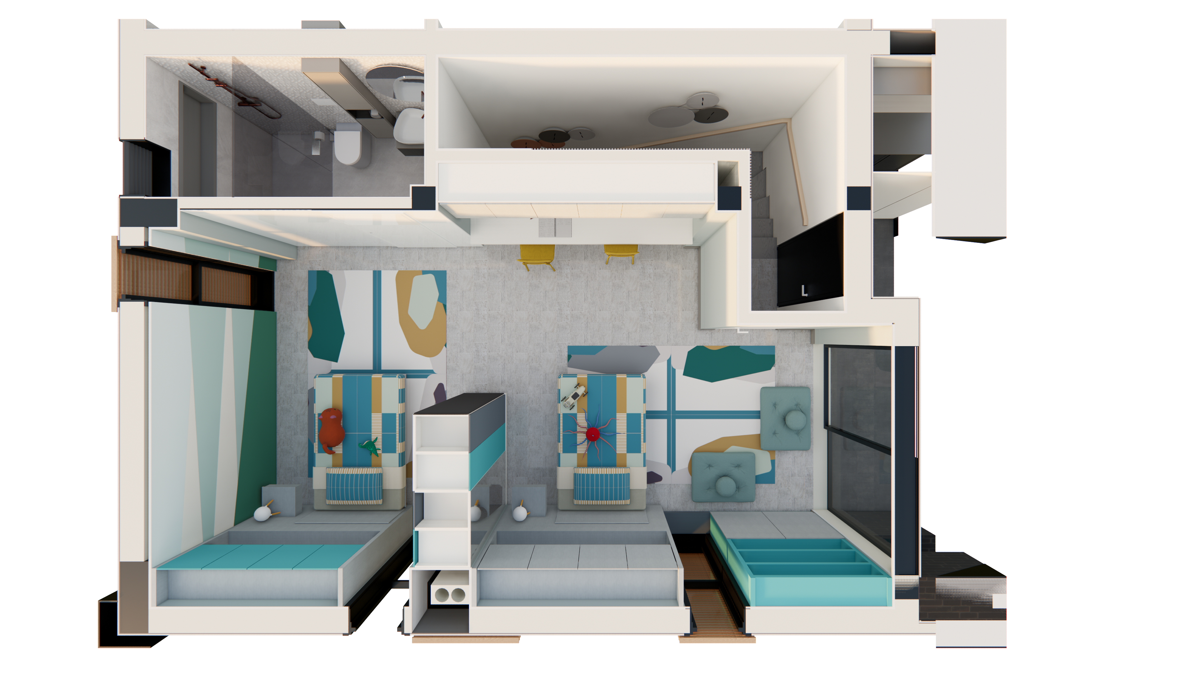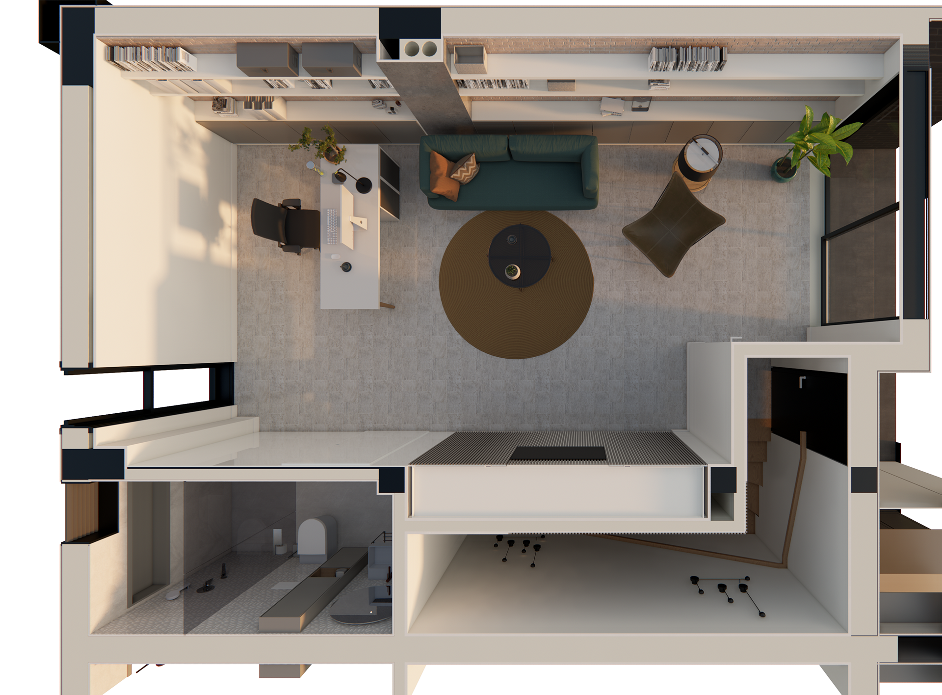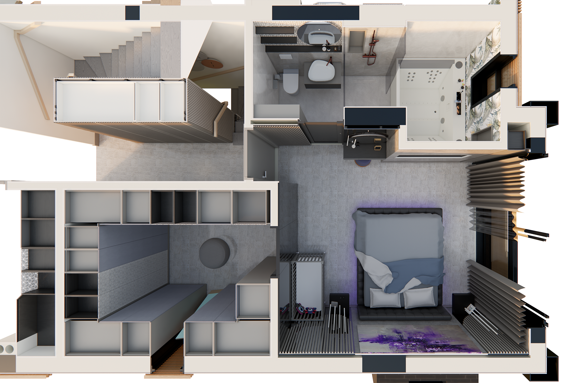 Moodboard and design proposal model of a Houses' Wetspaces reconstruction project that includes LOD300 Scan to BIM model.