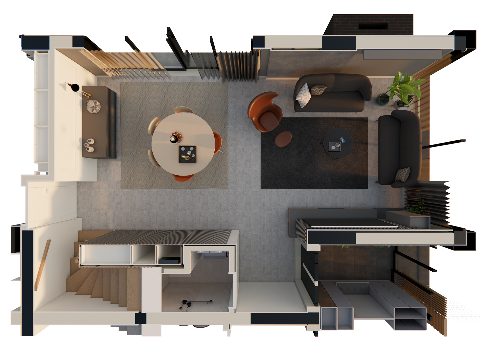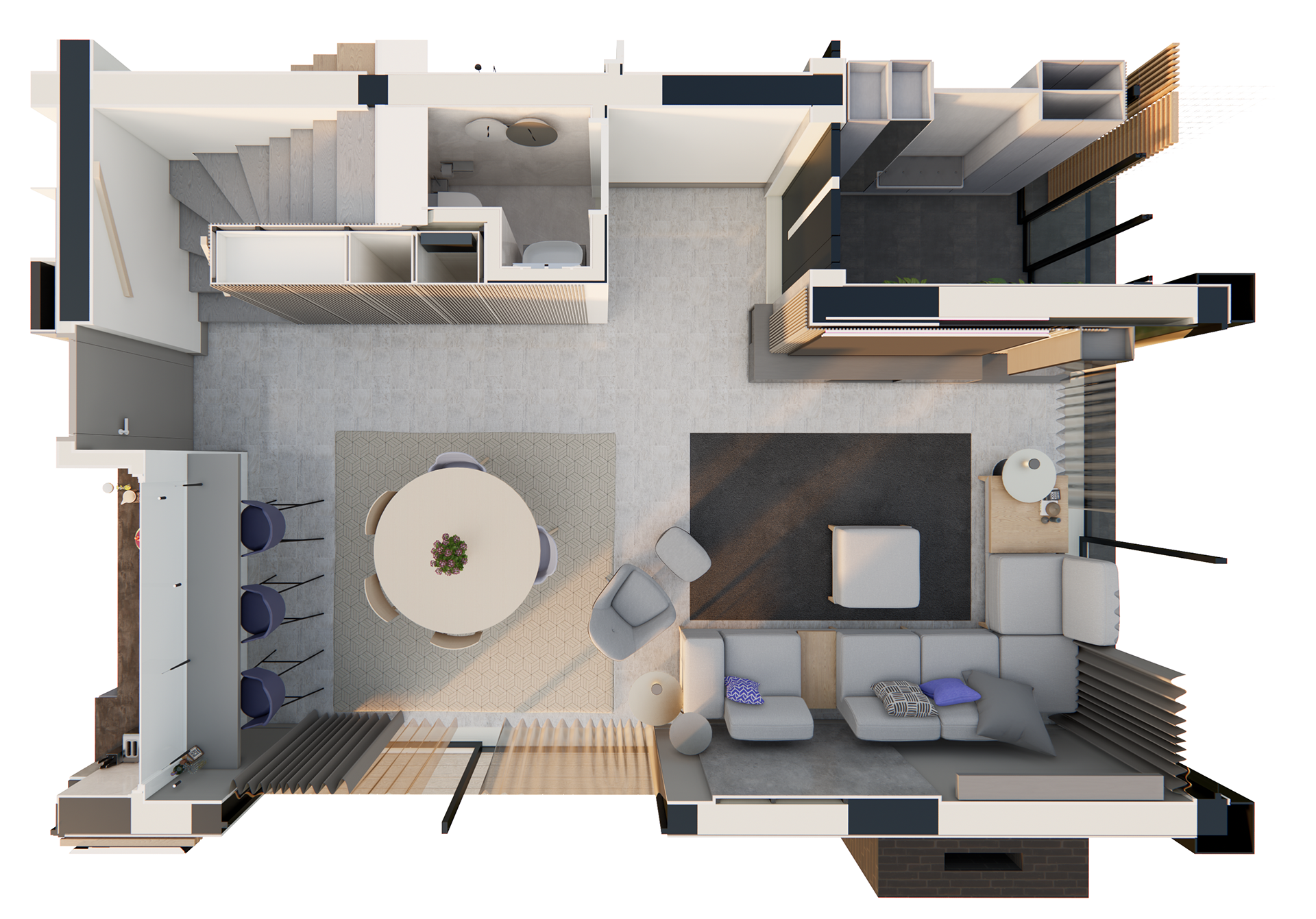 Design contribution and draft plans of a single-family house with 3D model render and walkthrough video.