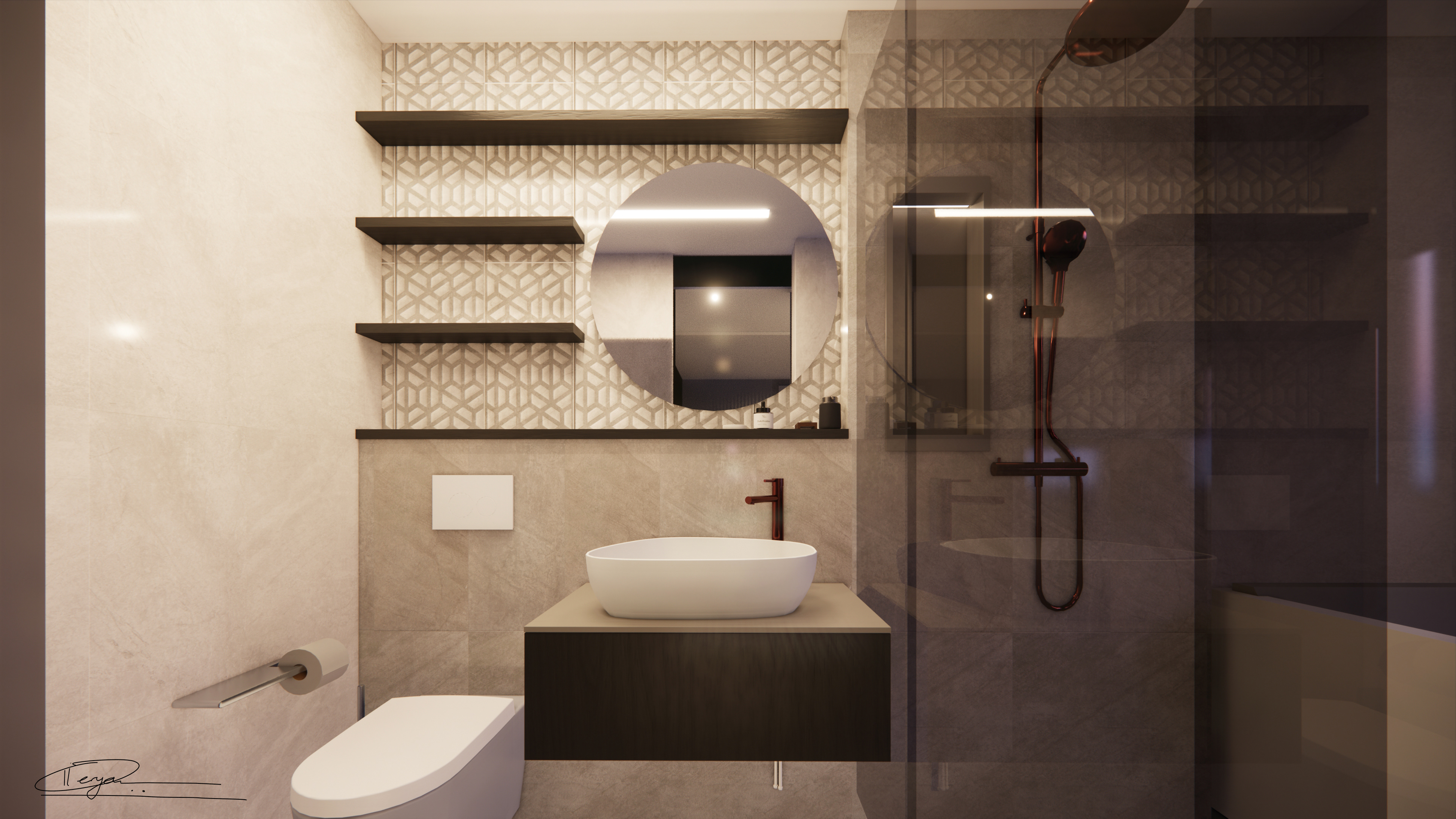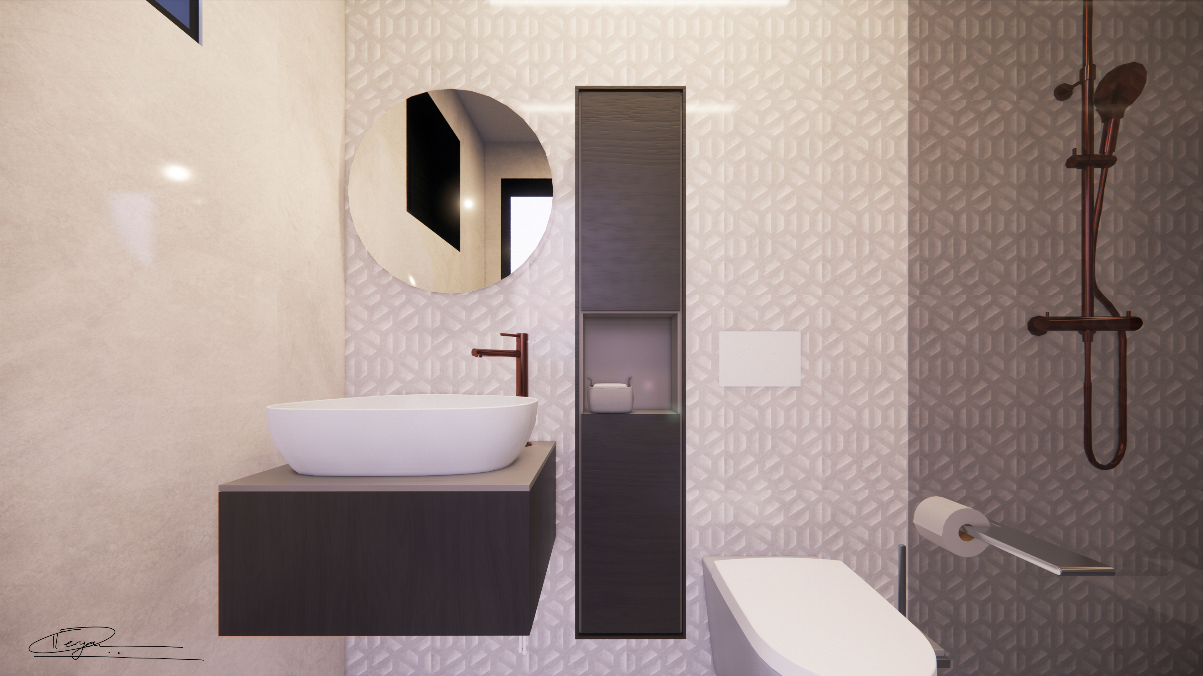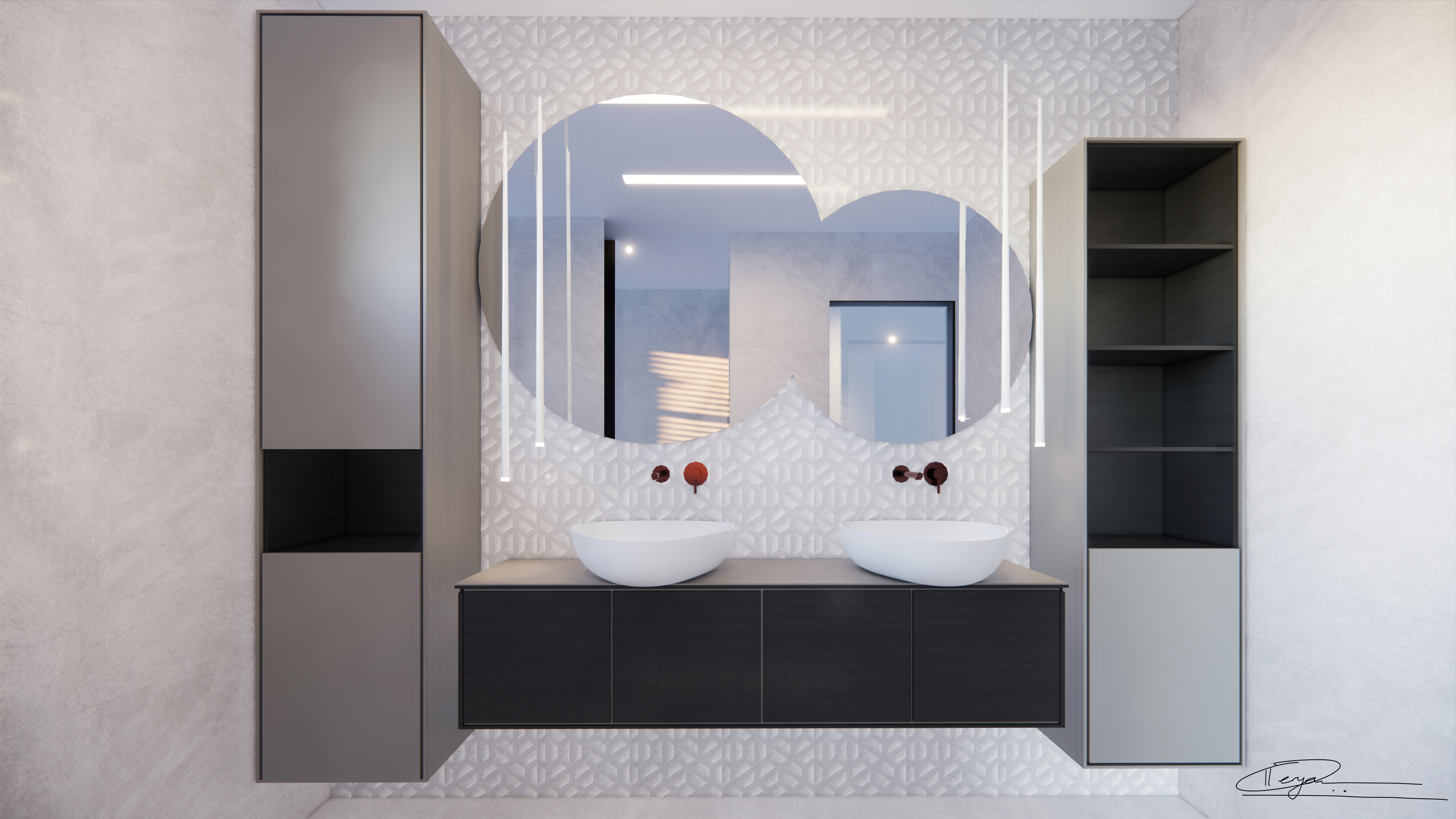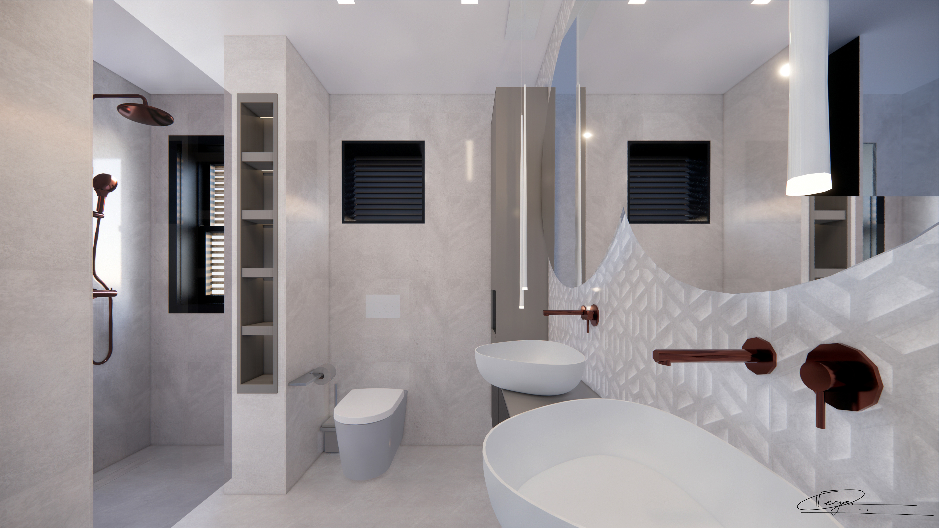 Moodboard and design proposal model of a Houses' Wetspaces reconstruction project that includes LOD300 Scan to BIM model.