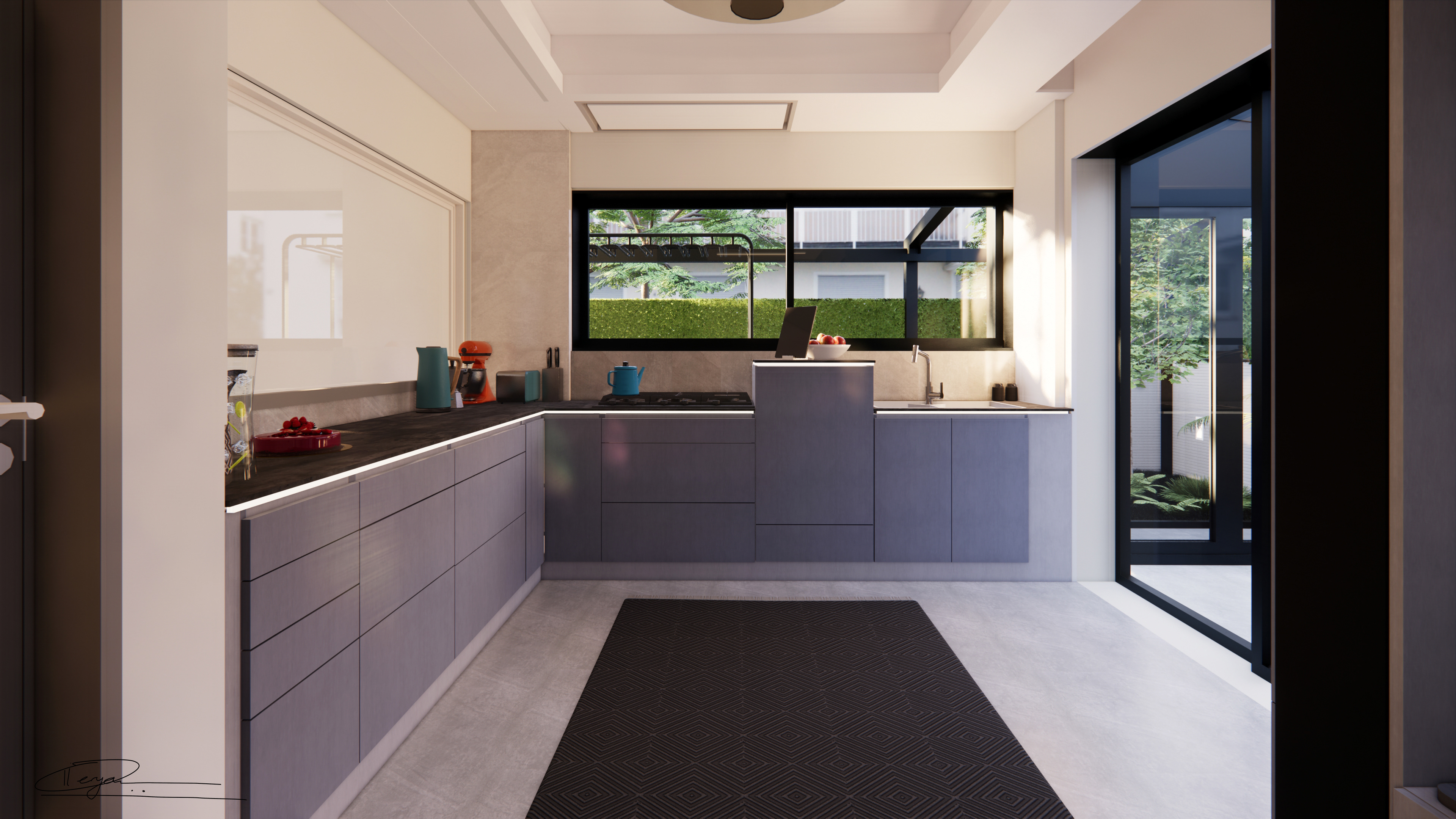 Design contribution and draft plans of a single-family house with 3D model render and walkthrough video.